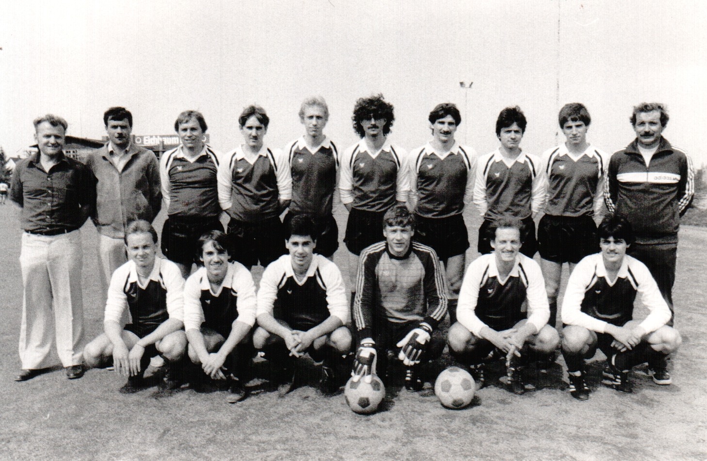 Betreuer Kurt Jäger, Harald Röhrenbeck, Peter Muth, Frank Krier, Berthold Weiler, Michael Ofenloch, Günter Braun, Georgios Panagopulos, J. Neu, Trainer Klaus Gleim.