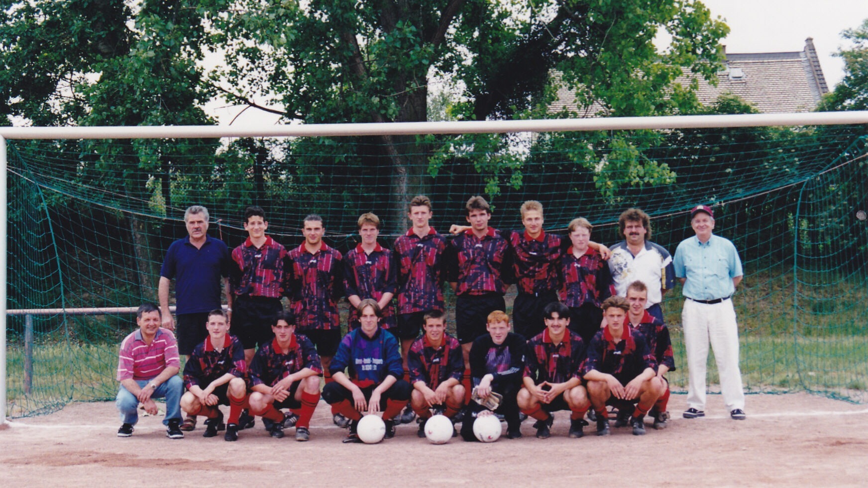 Co-Trainer Hans Rohmann, ?, ?, Julian Fink, Arne Jödicke, Django Klag, ?, ?, Trainer Thomas Weisgerber.