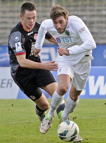Hochkonzentriert in den ersten fünf Minuten! steht auf einem Zettel in der Kabine mit den wichtigsten Tugenden. Es half nichts gegen Alzenau, es half nichts gegen Mainz und gestern half es nichts gegen Kaiserslautern. In allen drei Spielen klingelte es nach weniger als 120 Sekunden schon in Kevin Knödlers Kasten. Diesmal war es ein Freistoß von links, der abgefälscht beim freistehenden Willi Orban landete 0:1. Schlechter konnte es nicht beginnen. Zudem präsentierte sich der FCK in der Folge ballsicherer und eleganter in der Offensivbewegung, während die Wormaten nicht nur gegen den Rückstand, sondern auch gegen den holprigen Acker und das schwer zu kontrollierende Spielgerät ankämpften. Da wären wir aber schon beim entscheidenden Stichwort: Kampf. Denn die Wormaten ließen die Köpfe nicht hängen und mühten sich sichtlich, wenn auch viele Aktionen nicht wie gewünscht klappten. Da nahm der Ball tückisch jede Unebenheit im Rasen mit, düpierte so manchen bei der Annahme und verzögerte Pässe. Trotzdem, von einem (ja, wieder dank des Rasens) gefährlichen Rückpass auf Knödler mal abgesehen (17.), konnte man nur auf Wormatia-Seite gefährliche Aktionen notieren. Bektasi verpasste eine Flanke nur knapp (21.), Toch wurde abgeblockt (24.), Röser zwang Torwart Müller mit einem Drehschuss zum Eingreifen (28.), Bektasis Flachschuss flog knapp vorbei (30.), Steil suchte nach einer Ecke verzweifelt die Lücke (33.), Wittke zirkelte drüber (36.), Tochs Schuss wurde unerreichbar für die Mitspieler abgefälscht (40.) und auch bei Ammanns Schuss in die kurze Ecke war im letzten Moment noch ein Fuß dazwischen (42.). Die wichtigste Szene für den weiteren Spielverlauf gab es jedoch in der 22. Minute, als Bektasi im Strafraum kreuzte und á la Hölzenbein (Borchers) den Elfmeter suchte. Konsequenz war die erste Gelbe Karte des Spiels.