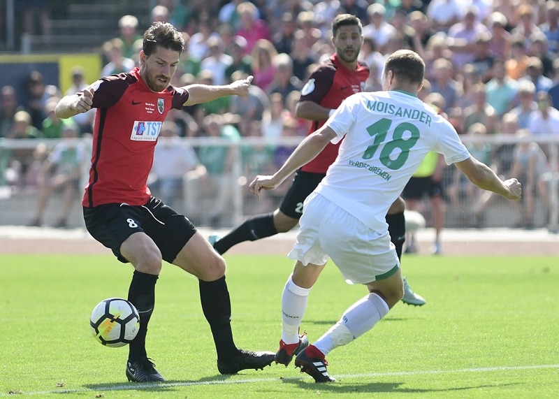 Tore: 0:1 Osako (9.), 0:2 Kainz (21.), 0:3 Bargfrede (31.), 0:4 Kruse (41./Foulelfmeter), 1:4 Mimbala (44.), 1:5 M. Eggestein (45.+1), 1:6 J Eggestein (79.)