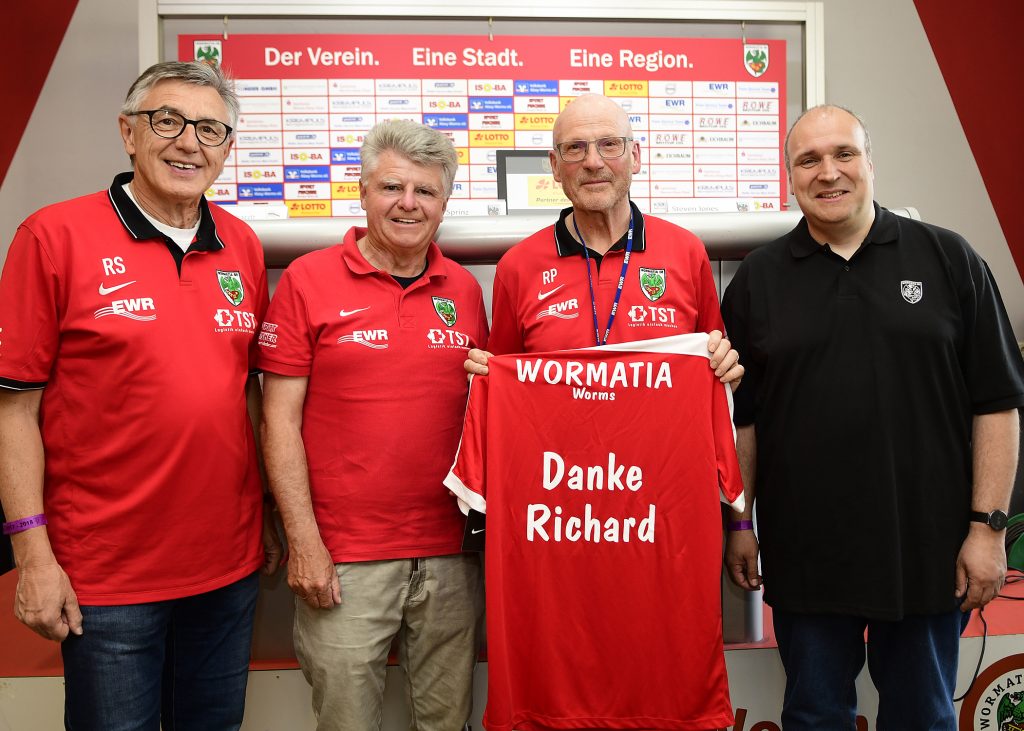 Er ist mit Leib und Seele seit Jahrzehnten Wormatianer. In den vergangenen 12 Jahren hat Richard sich darüber hinaus als Teil der Kabinencrew bei fast jedem Heimspiel ehrenamtlich für Wormatia engagiert. Ob beim Spiel selbst oder anschließend in der Pressekonferenz, auf Richard war immer Verlass, er war immer da wenn er gebraucht wurde. Manchmal hat er sich in der Sprecherkabine auch als D-Jay betätigt und CDs abgespielt. Ganz besonders gerne natürlich die CD mit dem Torjubel für unsere Mannschaft. So auch an seinem letzten Arbeitstag, am Samstag gegen Völklingen und das gleich drei Mal. Ein schöner Abschied in den ehrenamtlichen Ruhestand.