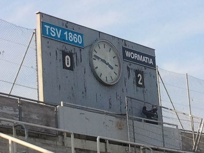 Der aufgerückte Marco Metzger verfehlte mit einem Flachschuss das Tor nur knapp (49.), danach kamen die nun ballsicheren Löwen besser ins Spiel. Die dicke Chance zum Ausgleich hatte der frei durchgelaufene Ziereis, einmal mehr jedoch blieb Knödler Sieger (57.). Lucas Oppermann sollte nun die Offensive beleben und kam für Martin Röser. Nach schönem Pass in die Tiefe konnte Toch aufs Tor marschieren, zielte aber ein paar Meter zu hoch (62.). Fünf Minuten später schlug der Ball dann unter tätiger Mithilfe der Gastgeber endlich zum 2:0 ein. Nach einem schnell ausgeführten Freistoß passte Oppermann scharf nach innen, wo der Münchner Hofstetter unhaltbar eingrätschte. Damit war das Spiel entschieden, auch wenn sich der TSV nicht aufgab und sich noch das ein oder andere Mal gefährlich dem Strafraum näherte es blieb beim 2:0. Der erste Wormatia-Sieg im Grünwalder Stadion überhaupt.