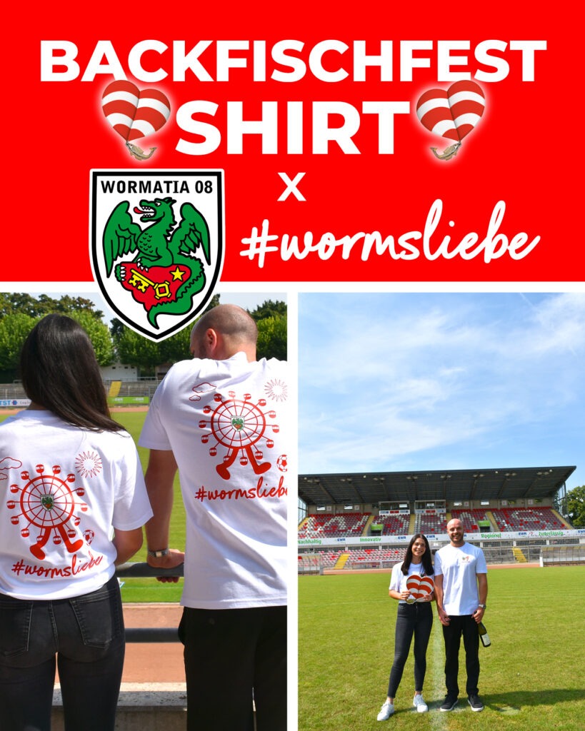 Backfischfest-Shirt: Frisch eingetroffen ist das neue Backfischfest-Shirt in Zusammenarbeit mit #wormsliebe! Erhältlich zum Preis von € 25,- am Samstag von 11 bis 13 Uhr bei den Marktwinzern & ab 13:15 Uhr in der EWR-Arena am Wormatia Fan-Shop, später dann zusätzlich online oder in der Geschäftsstelle.