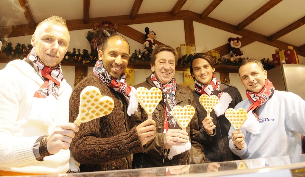 Waffeln mit Herz so hieß das Motto der diesjährigen Wormatia-Aktion, bei der die drei Regionalligaspieler Sandro Rösner, Marco Stark und Kevin Knödler das Wormatia-Trikot gegen eine Schürze tauschten, um auf dem Wormser Weihnachtsmarkt Waffeln für einen guten Zweck zu backen.