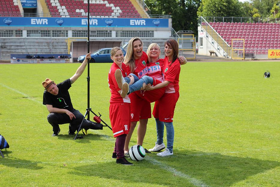 Am vergangenen Freitag fanden sich in den frühen Morgenstunden einige Spielerinnen der Frauenmannschaft, Spieler der ersten Mannschaft sowie die Trainer der U-23 in der EWR-Arena ein, um an einem Fotoshooting für die im August startende Kampagne "Grenzen achten!" gegen sexualisierte Anmache und Belästigung im öffentlichen Raum teilzunehmen.