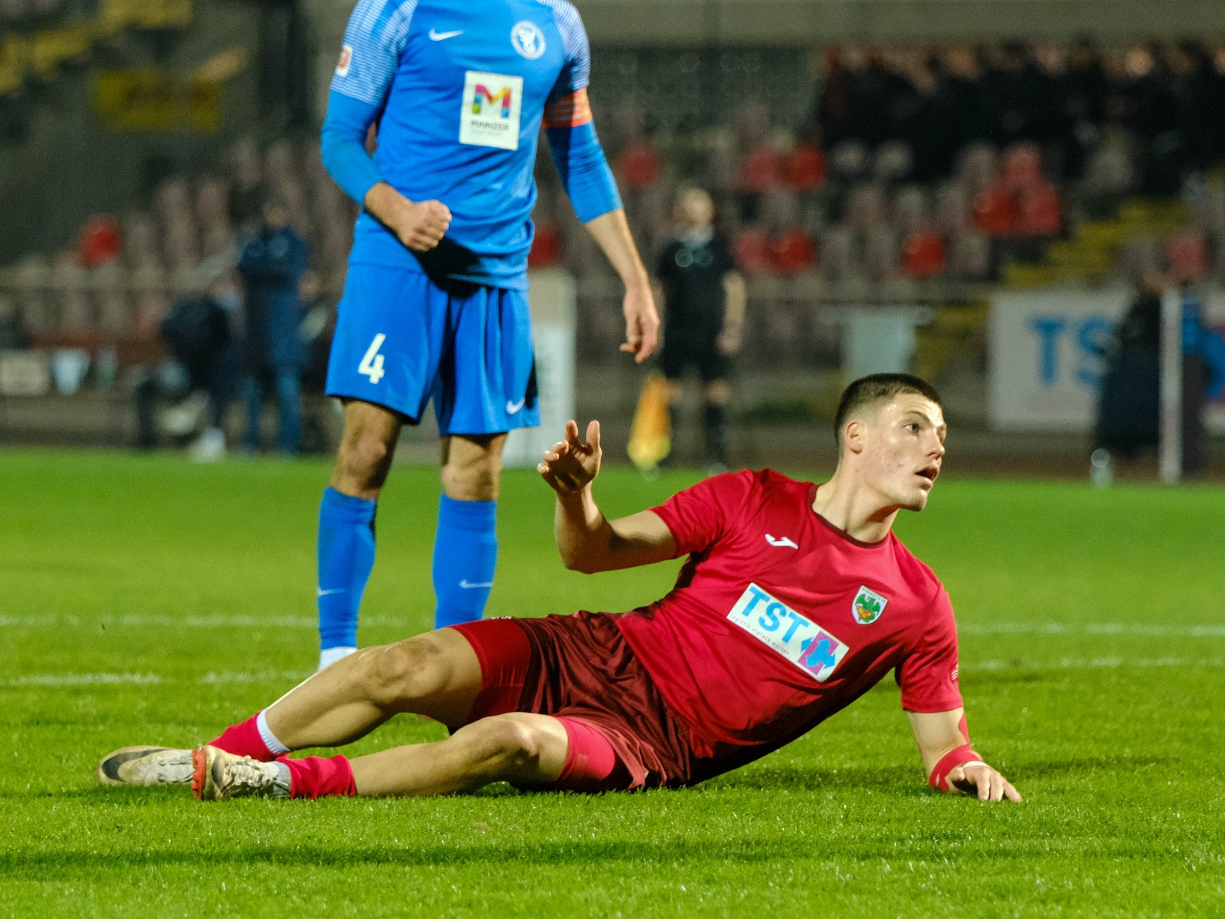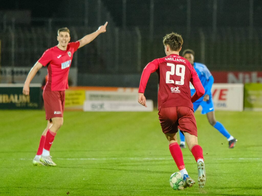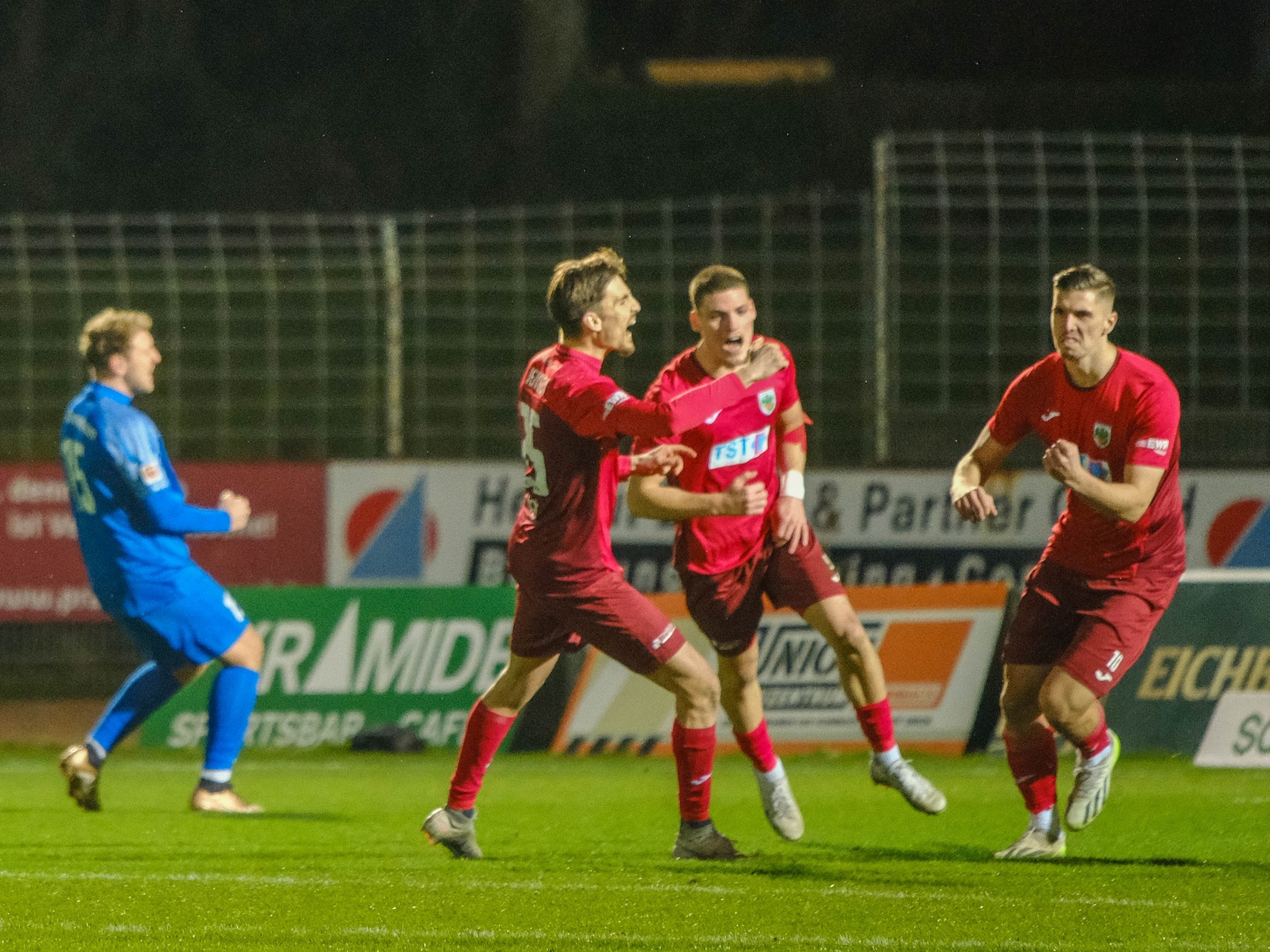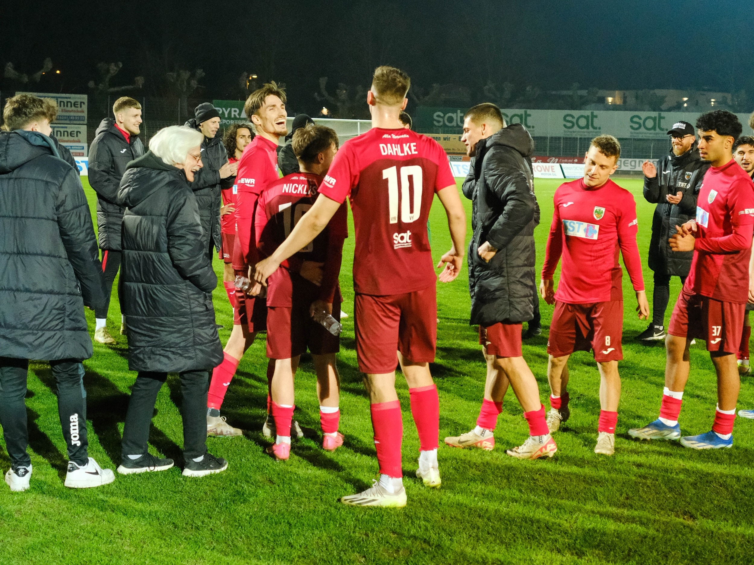 Für den gesperrten Sandro Loechelt gab erwartungsgemäß Winterzugang Luca Jensen sein Startelfdebüt. Jannik Marx führte als Kapitän eine Mannschaft an, die top motiviert loslegte wie die Feuerwehr und den Gästen in den ersten zehn Minuten kaum Luft zum atmen ließ. Umut Sentürk prüfte Torwart Simon per Freistoß (2.), Jensen schoss einen weiteren am Tor vorbei (4.), Maximilian Fesser mit einem Kopfball (5.) und dann in der siebten Minute ein Elfmeterpfiff. Jan Dahlke hatte Daniel Kasper klug freigespielt, der versuchte den Lupfer und wurde vom Torwart abgeräumt. Dahlke übernahm die Verantwortung und verwandelte präzise zum 1:0 (8.).