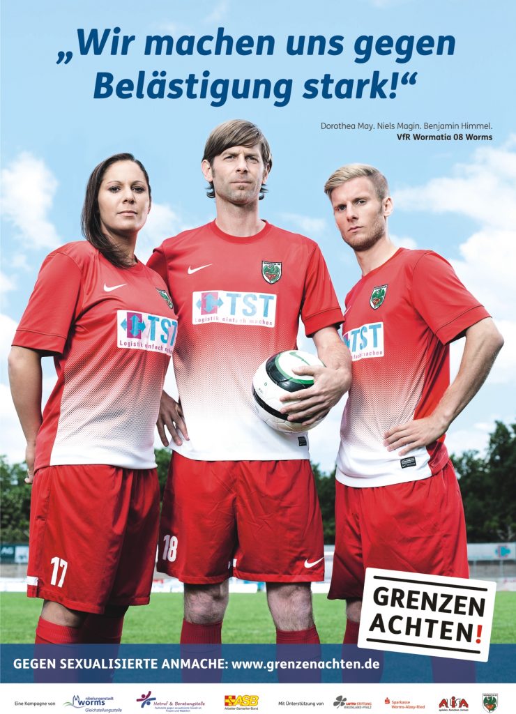 Mit GRENZEN ACHTEN! wollen die Gleichstellungsstelle der Stadt Worms, der Frauennotruf Worms und der Kinderschutzdienst des Arbeiter-Samariter-Bundes gemeinsam mit der Wormatia auf die alltägliche sexualisierte Anmache von Mädchen und Frauen im öffentlichen Raum aufmerksam machen und mehr Respekt gegenüber Frauen einfordern.