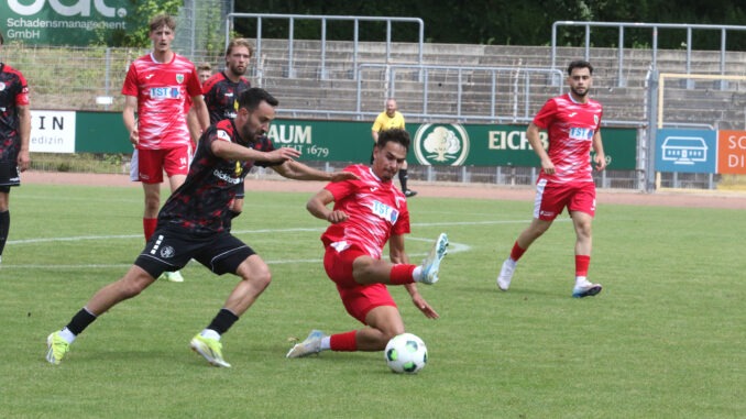 Ein Klassenunterschied war nicht festzustellen, der VfR kontrollierte die Anfangsphase und hatte gleich mehrere schöne Spielzüge mit gefährlichen Abschlüssen. Mit einem Schuss in die kurze Ecke nach schönem Schnittstellen-Pass von Mert Özkaya erzielte Laurenz Graf dann auch das 1:0 (6.). Die Gäste antworteten mit einem Distanzschuss, den Tobias Edinger zur Ecke lenkte (7.).