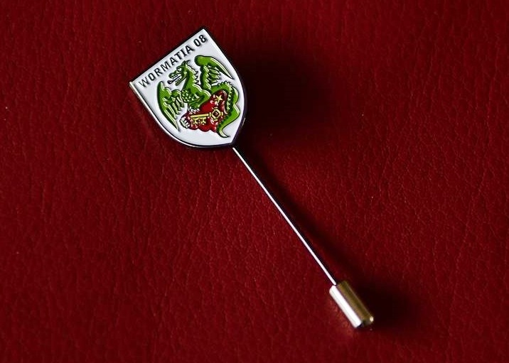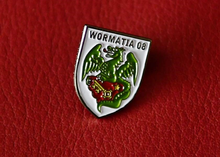 Der neue Wormatia-Pin für 2,50 Euro und die passende Anstecknadel für 3 Euro.
