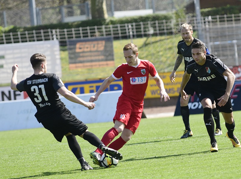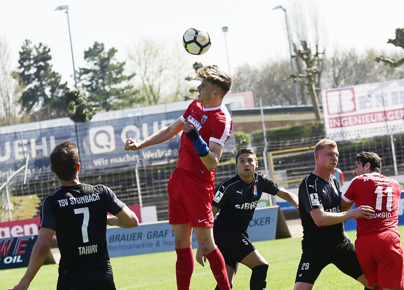 Angesichts des derzeit etwas holprigen Rasens und der Steinbacher Umschaltqualitäten stand der VfR wieder etwas tiefer. Und man merkte der Mannschaft die sportlich angespannte Situation an, Erfolg im Pokal hin oder her. Nervös und mit einigen Unsicherheiten zeigte sie sich im ersten Durchgang, offensive Aktionen gab es kaum. Die Gäste übernahmen die Kontrolle und immerhin zwei Torchancen, von denen sie eine auch nutzten. Steve Kroll lenkte einen Schuss von Felek an die Latte (13.), dann verlängerte der Steinbacher Winterzugang an den langen Pfosten zu Tahiri und es stand 0:1 (34.). Damit ging es auch in die Kabine.