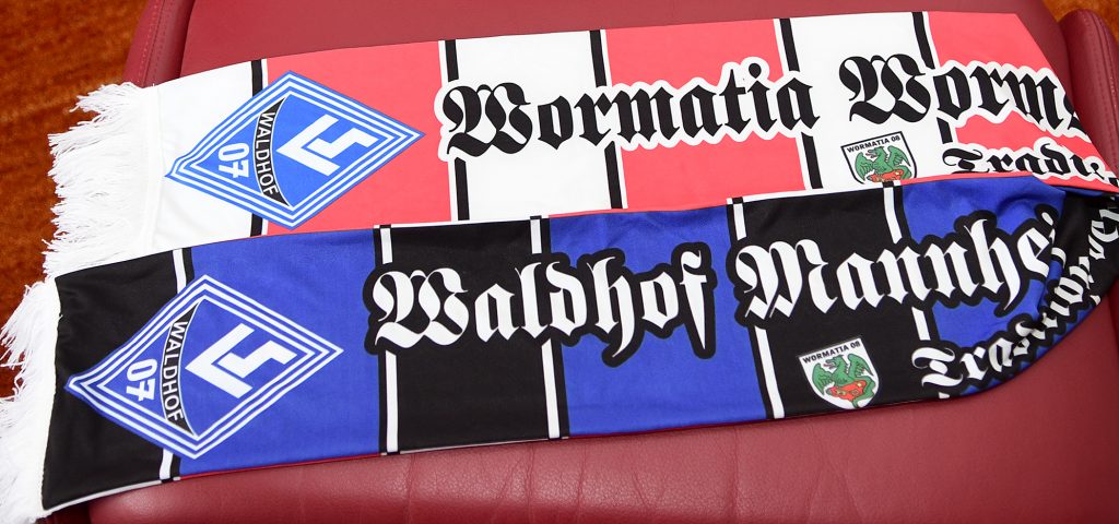 Im Rahmen des am Samstag, 13.10.2018 stattfindenden Regionalligaspiels gegen den SV Waldhof Mannheim in der EWR-Arena präsentiert der VfR Wormatia 08 Worms wieder speziell für dieses Derby den beidseitig bedruckten Seidenschal in beiden Vereinsfarben mit dem Motto "Tradition vergeht nie".