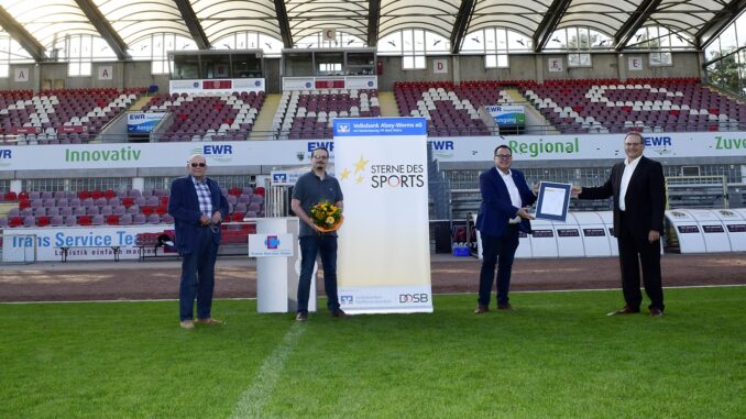 „Die Sportvereine und vor allem die Sieger haben sehr gute und wirkungsvolle Bewerbungen abgegeben, die eindrucksvoll zeigen, was Sportvereine über den Sport hinaus leisten“, lobte Günter Brück, Vorstandssprecher der Volksbank Alzey-Worms, bei der Übergabe des Preises an Wormatia-Vorsitzenden Jochen Schneider. „Die Sterne des Sports sind für uns zu einer Herzensangelegenheit geworden. Wir sind stolz darauf, solche Breitensportprojekte in die Mitte der Gesellschaft zu tragen, denn sie zeigen jedes Jahr aufs Neue das beeindruckende Spektrum der Arbeit in den Sportvereinen. Wegen der Kontaktbegrenzung haben wir auf eine große Ehrungsgala verzichtet, daher sind die Einzelpreisverleihungen vor Ort bei den Vereinen in Coronazeit eine gute Lösung, um den Preis stilvoll zu überreichen und unsere Wertschätzung zu zeigen.“