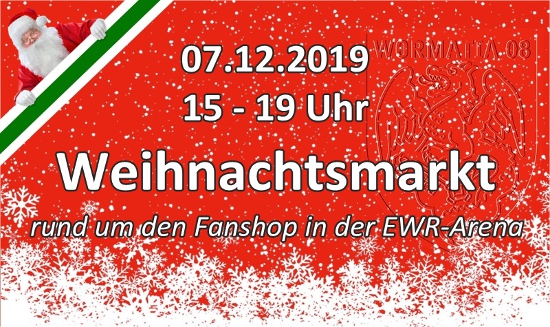 Nach der Premiere letztes Jahr gibt es auch dieses Jahr wieder einen Wormatia-Weihnachtsmarkt rund um den Fanshop in der EWR-Arena. Merkt Euch schon einmal den Termin: Samstag, 07.12.2019, 15 bis 19 Uhr. Nähere Infos folgen!